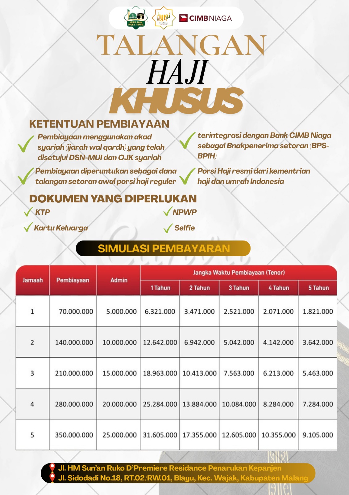 Menyediakan tiket pesawat, hotel berbintang, bus AC, perlengkapan Umrah, dan asuransi perjalanan.