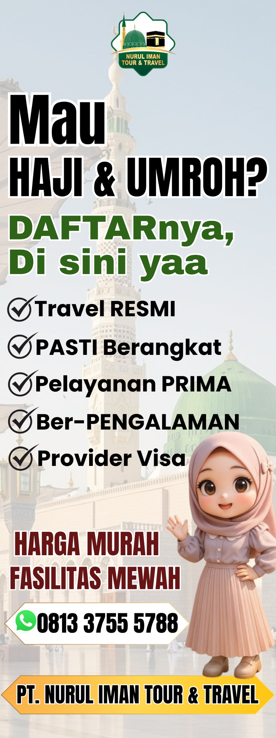 PT. Nurul Iman Tour & Travel adalah salah satu penyedia jasa perjalanan wisata religi di Malang, Jawa Timur yang telah beroperasi sejak tahun 2015. Kami mengkhususkan diri dalam pelayanan Umrah, Haji Plus, dan Haji Langsung Berangkat ( Furodha ) dengan komitmen untuk memberikan pengalaman spiritual yang mendalam bagi setiap jamaah. Berbekal izin resmi dari Kementerian Agama dan didukung oleh tim profesional yang berkompeten, kami menjamin proses ibadah yang lancar, aman, dan nyaman. Pelayanan kami meliputi pengurusan dokumen, manasik, hingga kepulangan, dengan kualitas pelayanan yang terjamin dan harga yang bersaing.